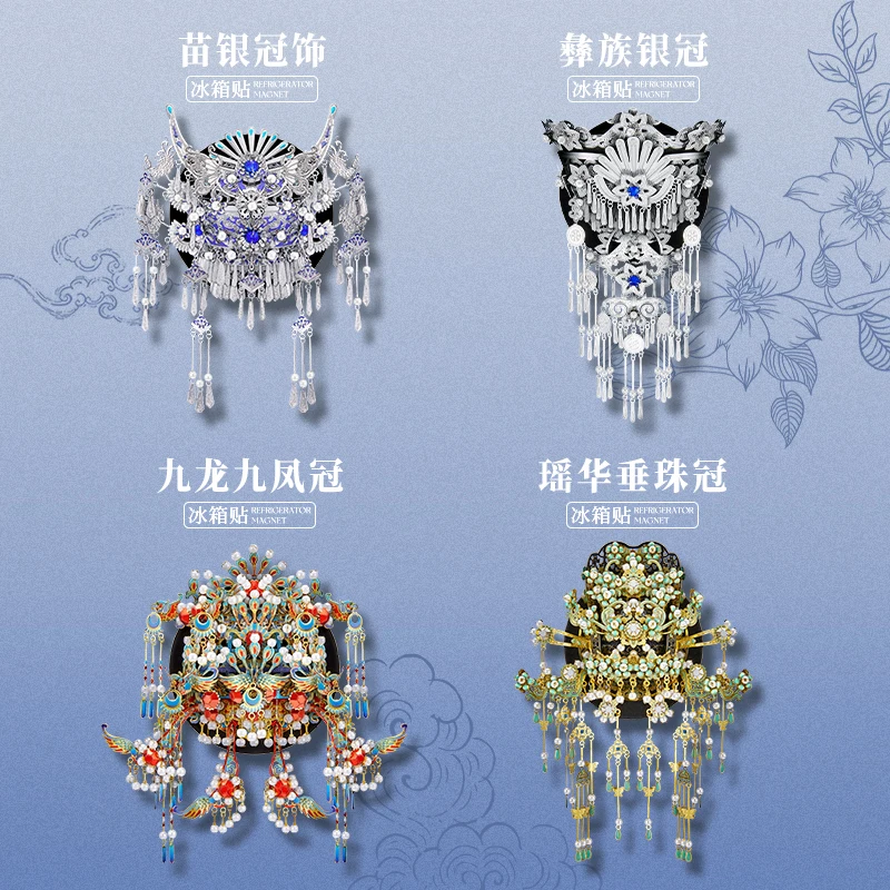 Crafted from high-quality metal sheets, this model features 206 precision-cut parts that assemble into an elegant tiara form with layered structure and intricate detailing. Despite its small size, the finished piece captures the richness of traditional Chinese decorative art, transforming cultural heritage into a modern, collectible fridge magnet.