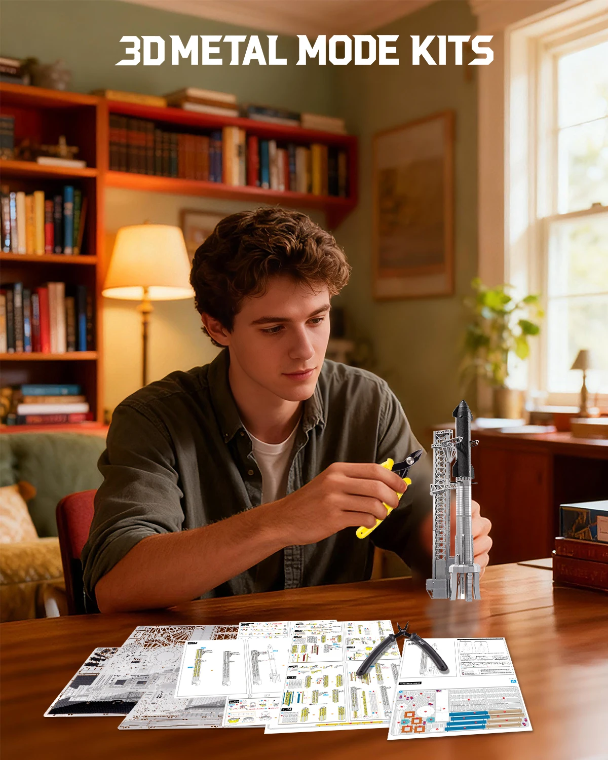 Embark on a cosmic journey with the Starship 3D metal puzzle. Designed for sci-fi enthusiasts, this model captures the sleek lines and intricate details of a futuristic spacecraft. Every curve, wing, and panel is faithfully recreated in stainless steel, providing a realistic miniature representation of an interstellar vessel.